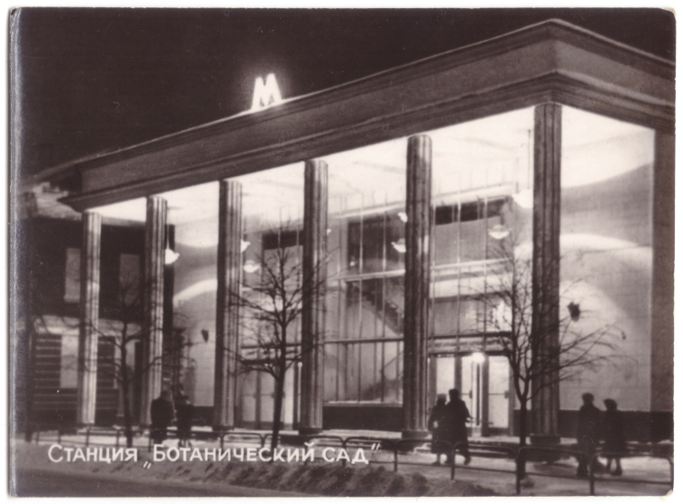 Пилонная трёхсводчатая станция глубокого заложения (глубина - 50 метров). Диаметр центрального зала — 9,5 метров, диаметр боковых залов — 8,5 метров. Поперечное сечение пилонов уменьшено. Сооружена по типовому проекту. Северный торец центрального зала станции соединён эскалаторным наклоном с единственным наземным вестибюлем, который был открыт на нечётной стороне проспекта Мира спустя год после самой станции – 1 мая 1959 года. Первоначальный наземный вестибюль (арх. Н.А.Алёшина - это её первая самостоятельная работа) был закрыт во второй половине 1970-х годов. Новый вестибюль встроенный в здание Инженерного корпуса Московского метрополитена (арх. В.М.Гинзбург, И.Г.Таранов) открылся в 1982 году. Вестибюль утратил свой самостоятельный фасад, но сохранил основные архитектурно-планировочные решения первого этажа, в том числе частично интерьеры пассажирских зон. Гинзбург и Таранов немного изменели планировку вестибюля: двери на вход и выход перенесли к краям вестибюля. Это, с одной стороны, позволило повысить пропускную способность вестибюля, с другой – расширить кассовый блок, находящийся между дверями. Расположение ещё одних дверей, со стороны бокового, южного фасада, сохранилось. Пилоны станции, облицованные белым мрамором, имеют карниз, за которым скрыты светильники. Путевые стены станции облицованы керамической плиткой цвета слоновой кости (ныне - белого цвета) и имеют продольные полосы из плитки чёрного цвета. Пол выложен в шахматном порядке плитами серого гранита двух оттенков — более тёмного и более светлого. В южном торце станции есть эскалаторный подъем для перехода на одноимённую станцию Кольцевой линии. Станцию возвело СМУ-3 Мосметростроя (рук. Т.Федорова). С момента открытия до 26 июня 1966 года станция называлась "Ботанический сад". В 2013 году на станции были уложен опытный участок пути на анкерных рельсовых креплениях. |